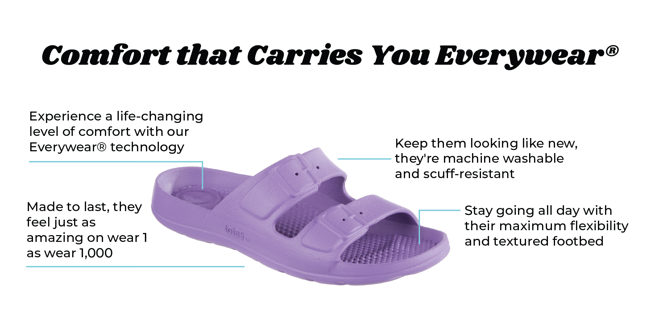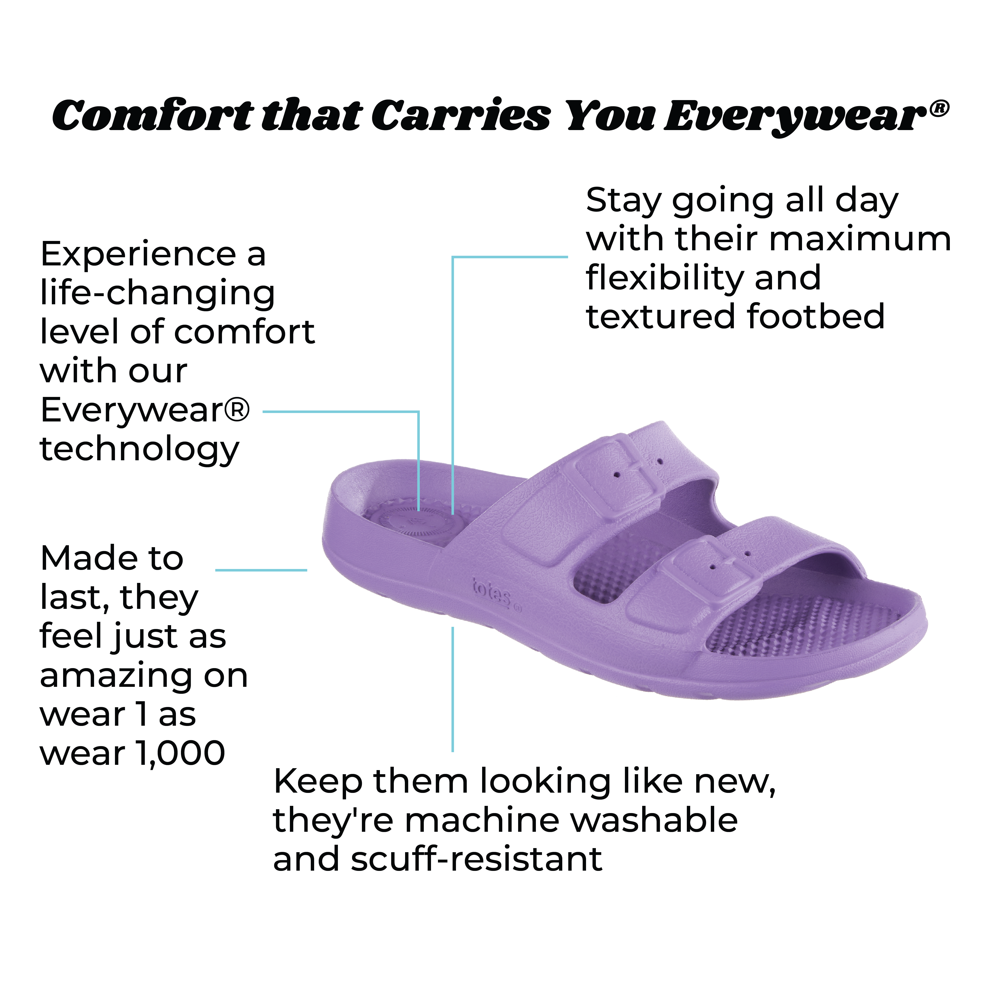 Made with lightweight, tough-as-nails Everywear® material, these slides are ready to move when you do. Morning rush? After-school adventures? No problem! And the buckle? It adds just the right amount of style to match your fave outfits.