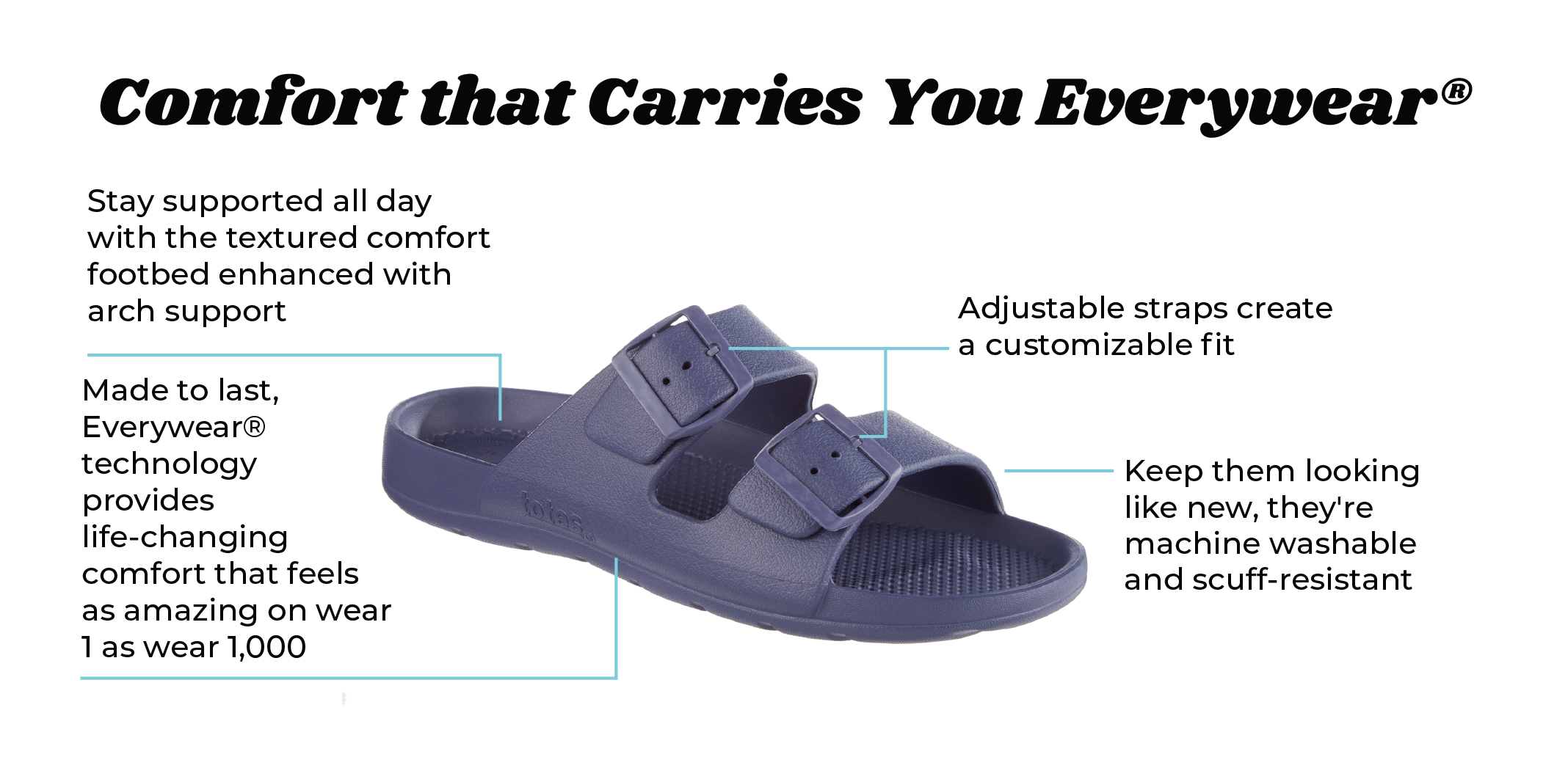 Built on a contoured molded footbed with solid arch support, it's made to move the way you do. Lightweight and ultra-durable Everywear® technology keeps up all day—from early runs to late nights out. And the molded buckle adds a clean, no-fuss finish.