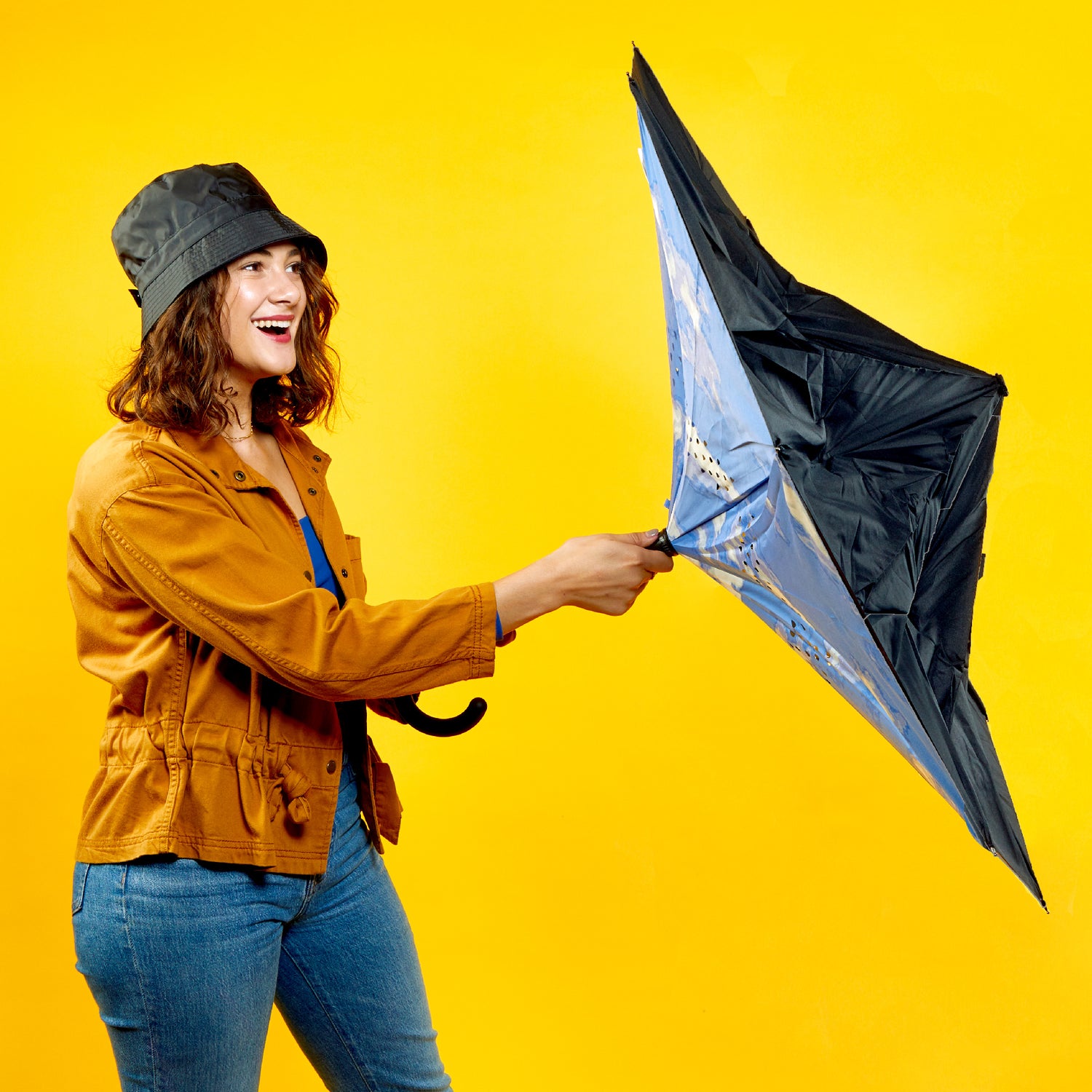 Don’t let ordinary folding umbrellas and their drippy messes win! Stay on the dry-side with our smartly designed InBrella...where innovation meets style. This extraordinary umbrella closes inside out, keeping water away from you. ​