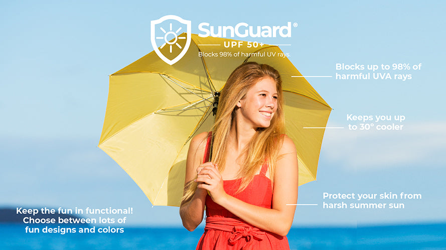 Umbrellas aren’t just for rain. Our Sunguard® umbrella gives a whole new and wonderful meaning to ”protection from the elements”! Protect your skin and keep cool with Sunguard®.