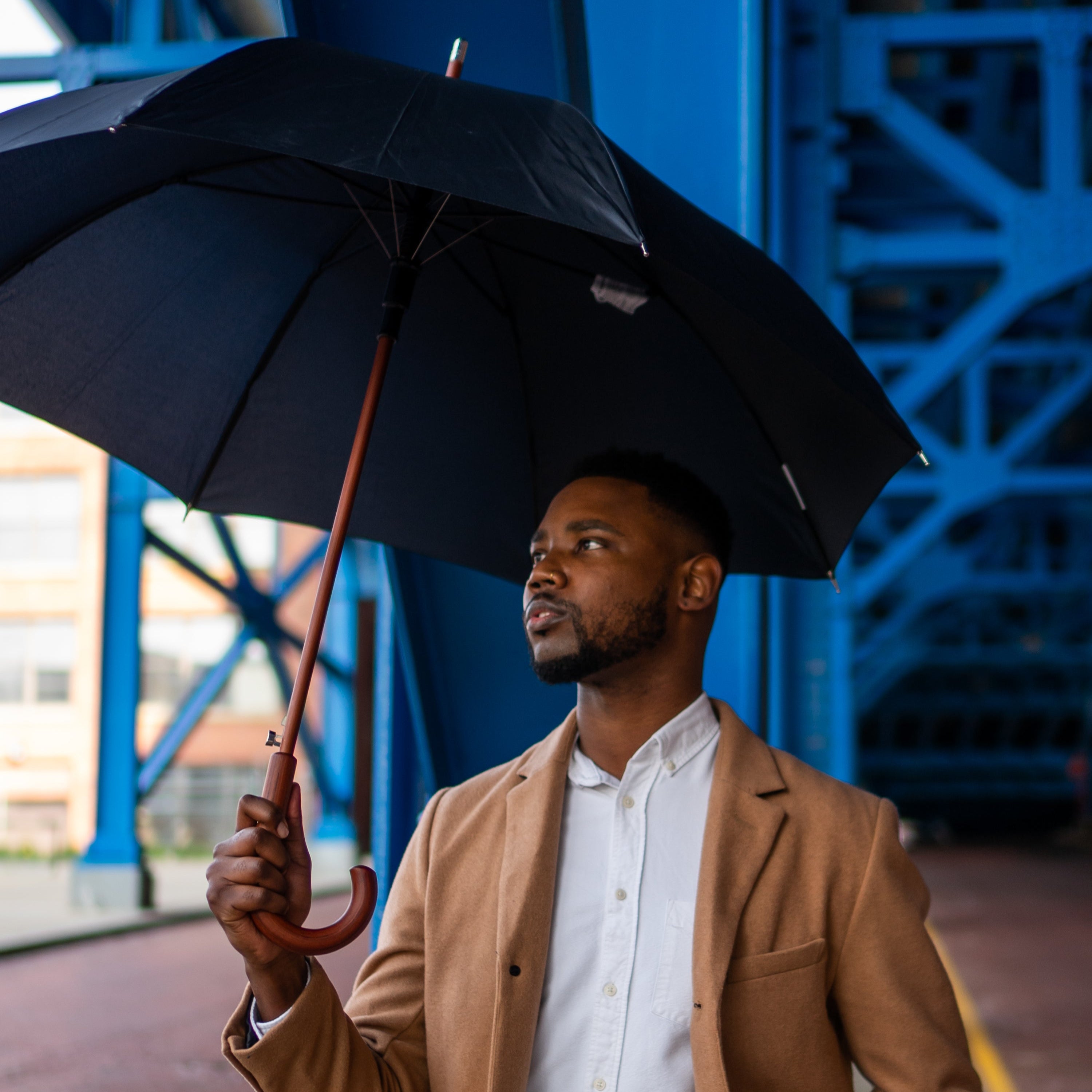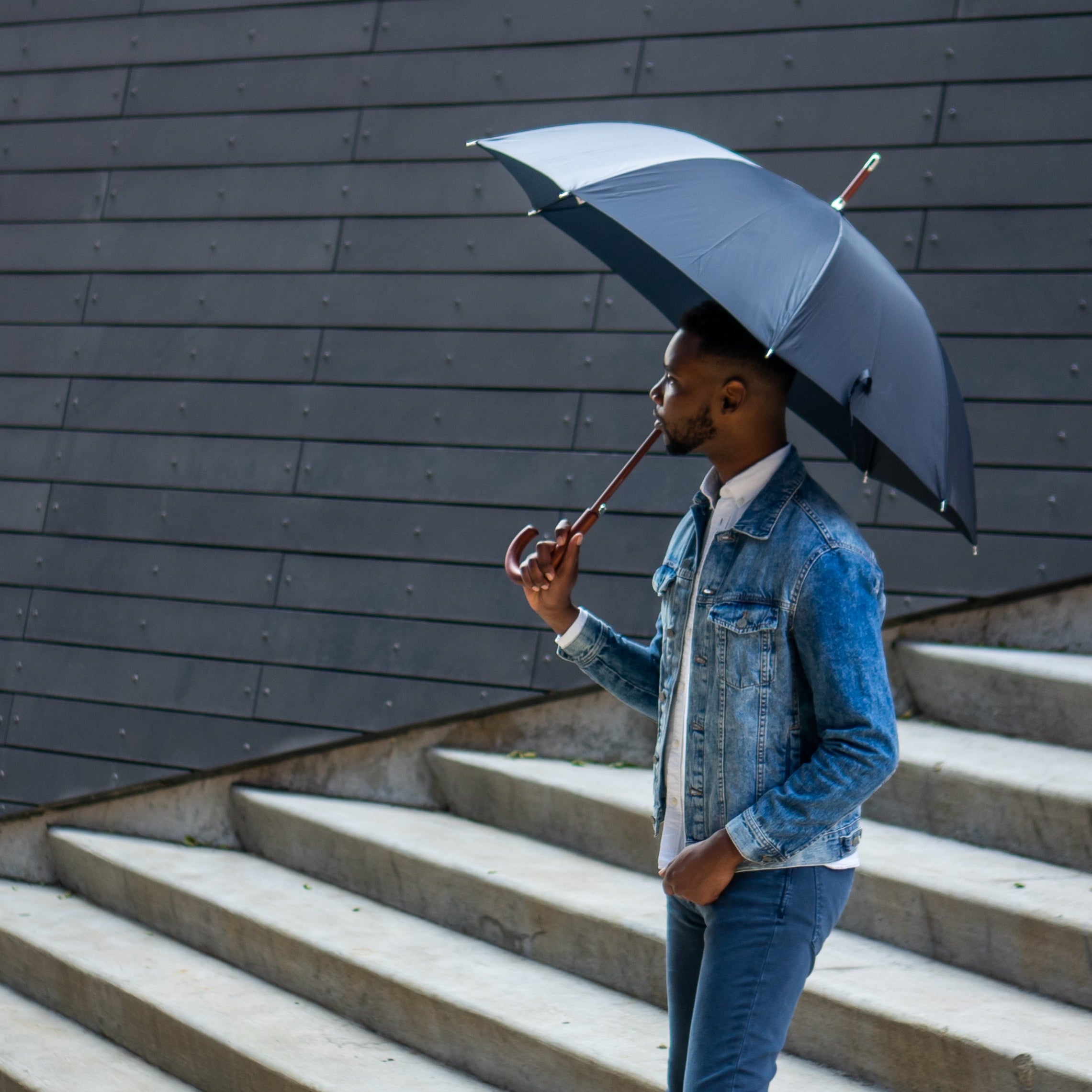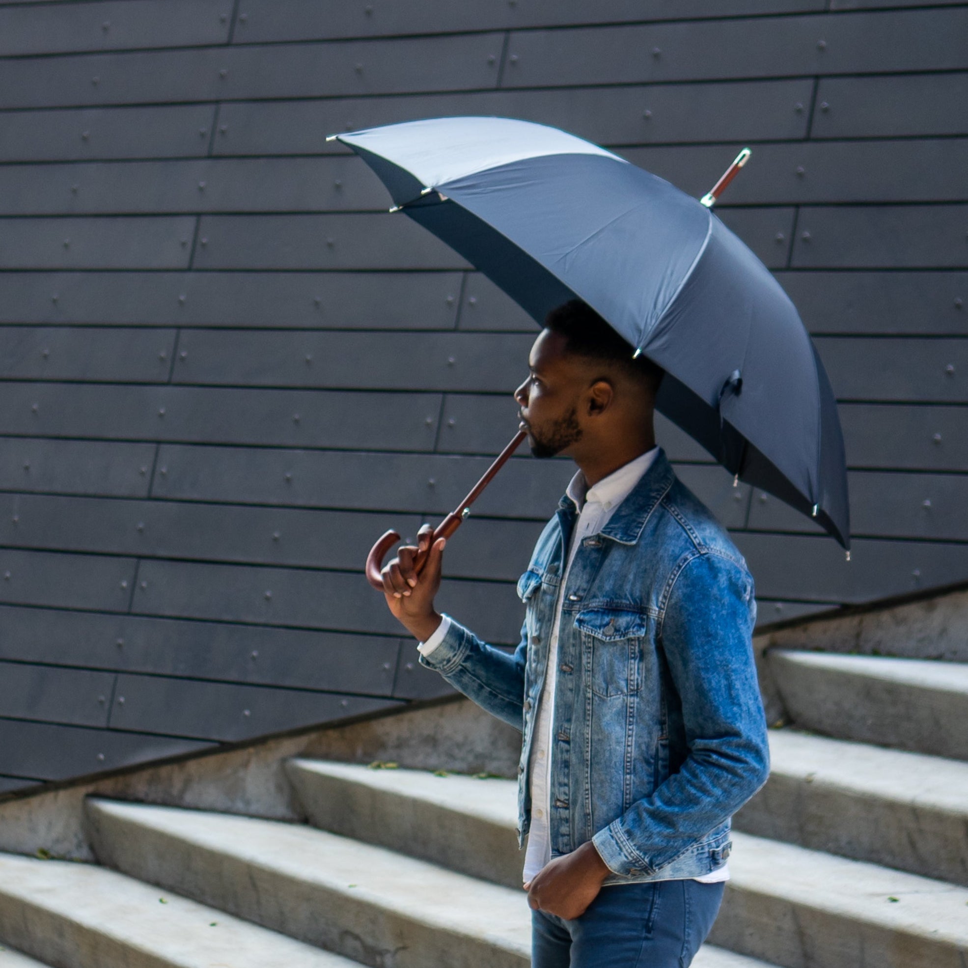 A true fashion classic, this elegant umbrella is the perfect finishing touch to any refined wardrobe. Crafted with a solid wood stick and a timeless crook handle, it combines enduring style with dependable functionality.