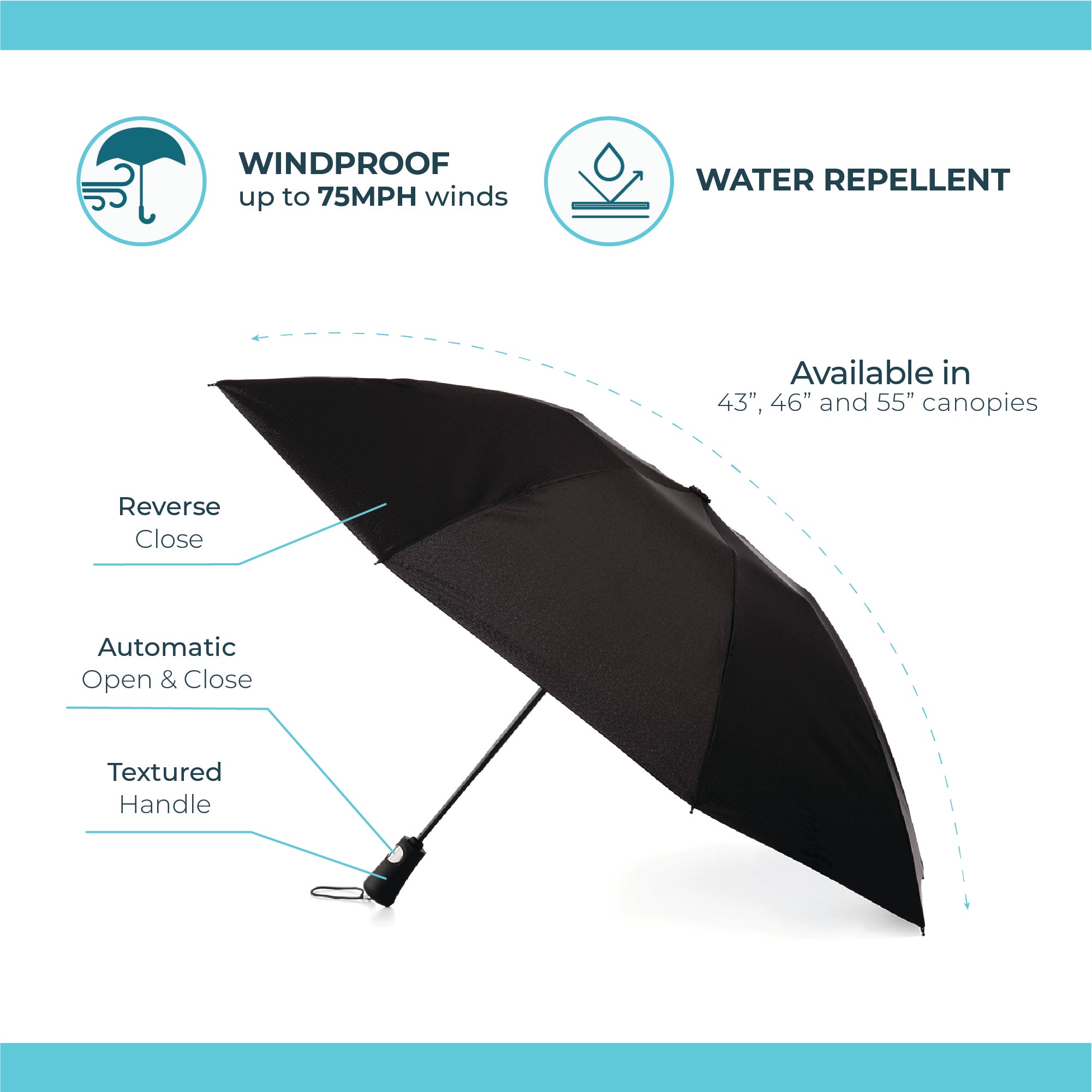 8418 43" Reverse Close Water Repellent Auto Open Close Umbrella