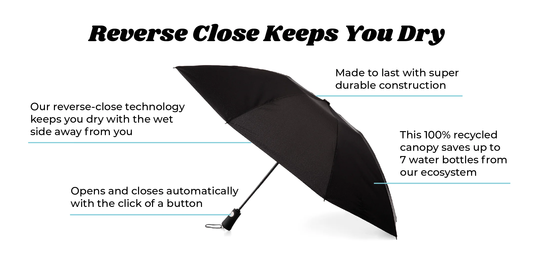 Built for life on the go, this is the perfect commuter umbrella—folding, water-repellent, and windproof up to 75 MPH.