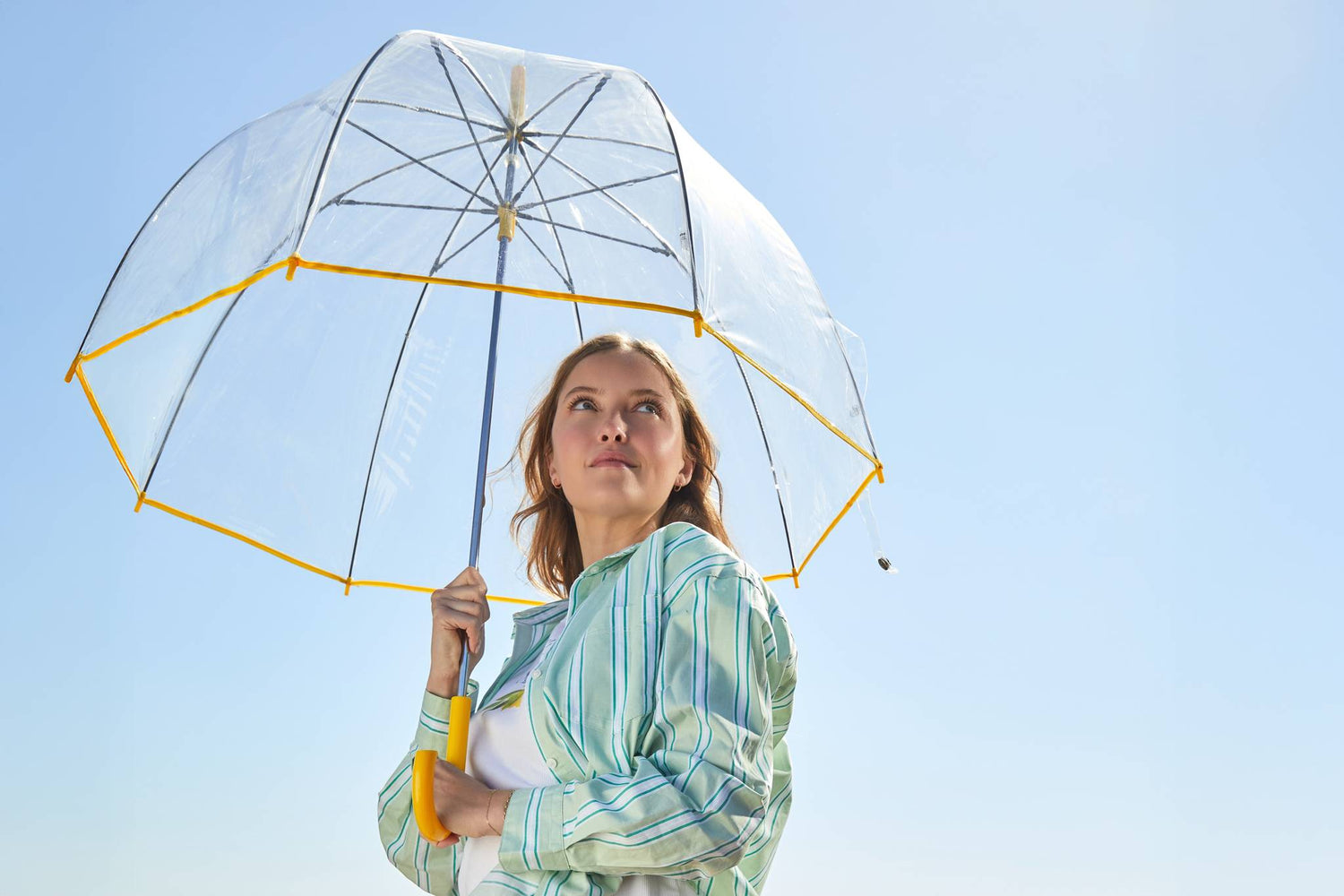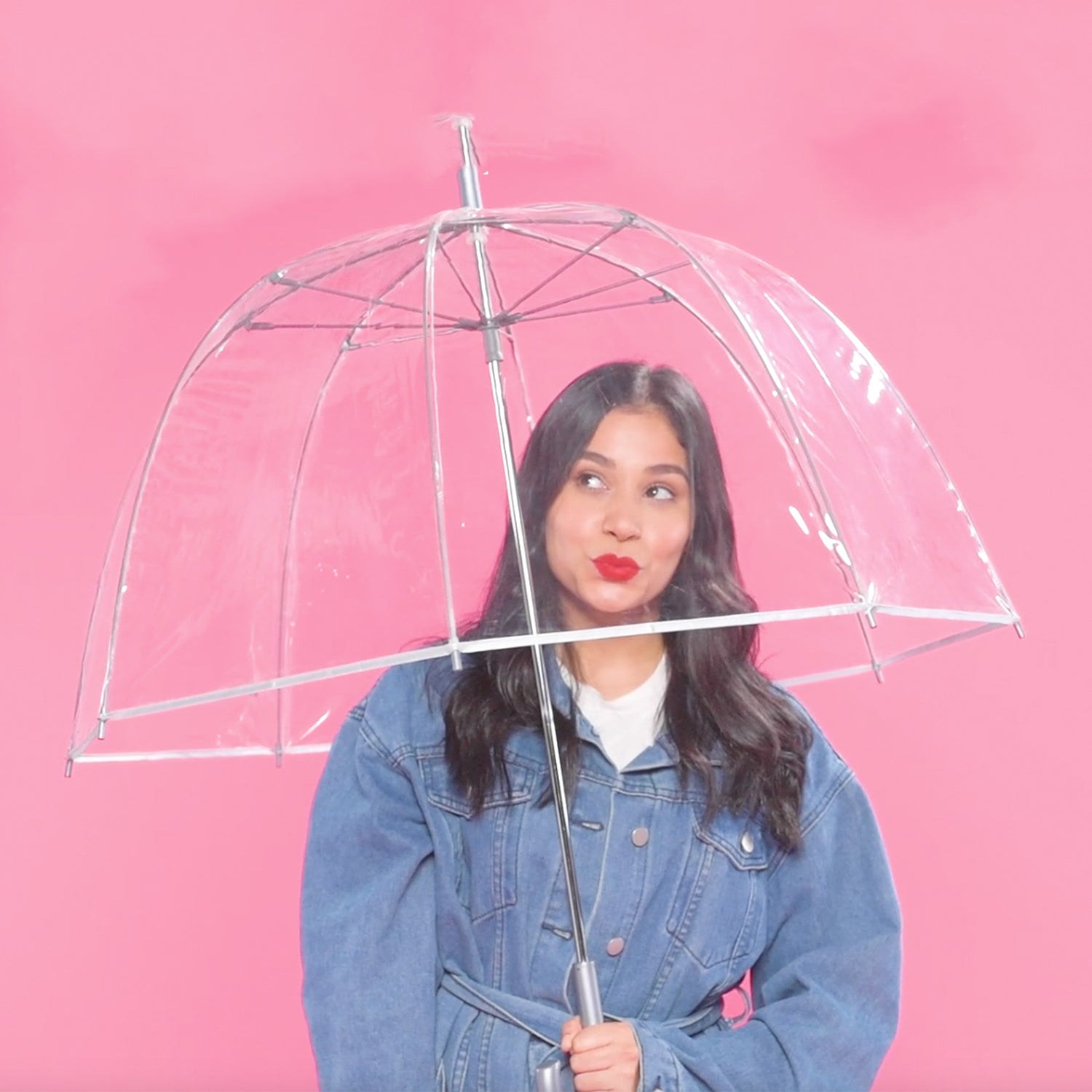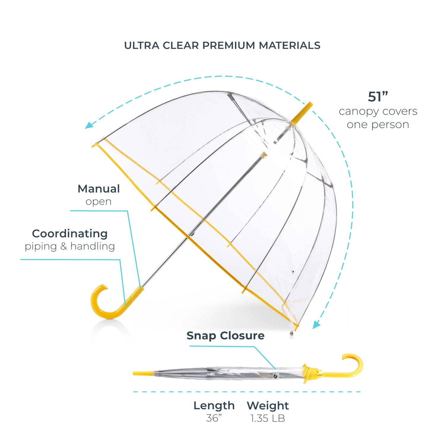 The oversized 51-inch clear dome provides full coverage, shielding your outfit while offering a totally see-through view that’s perfect for navigating busy city streets.