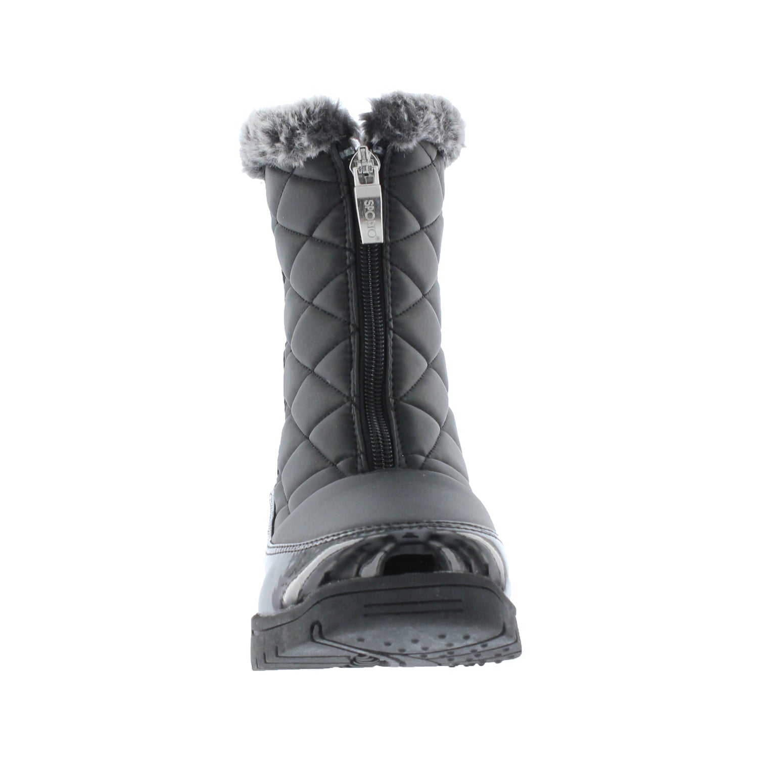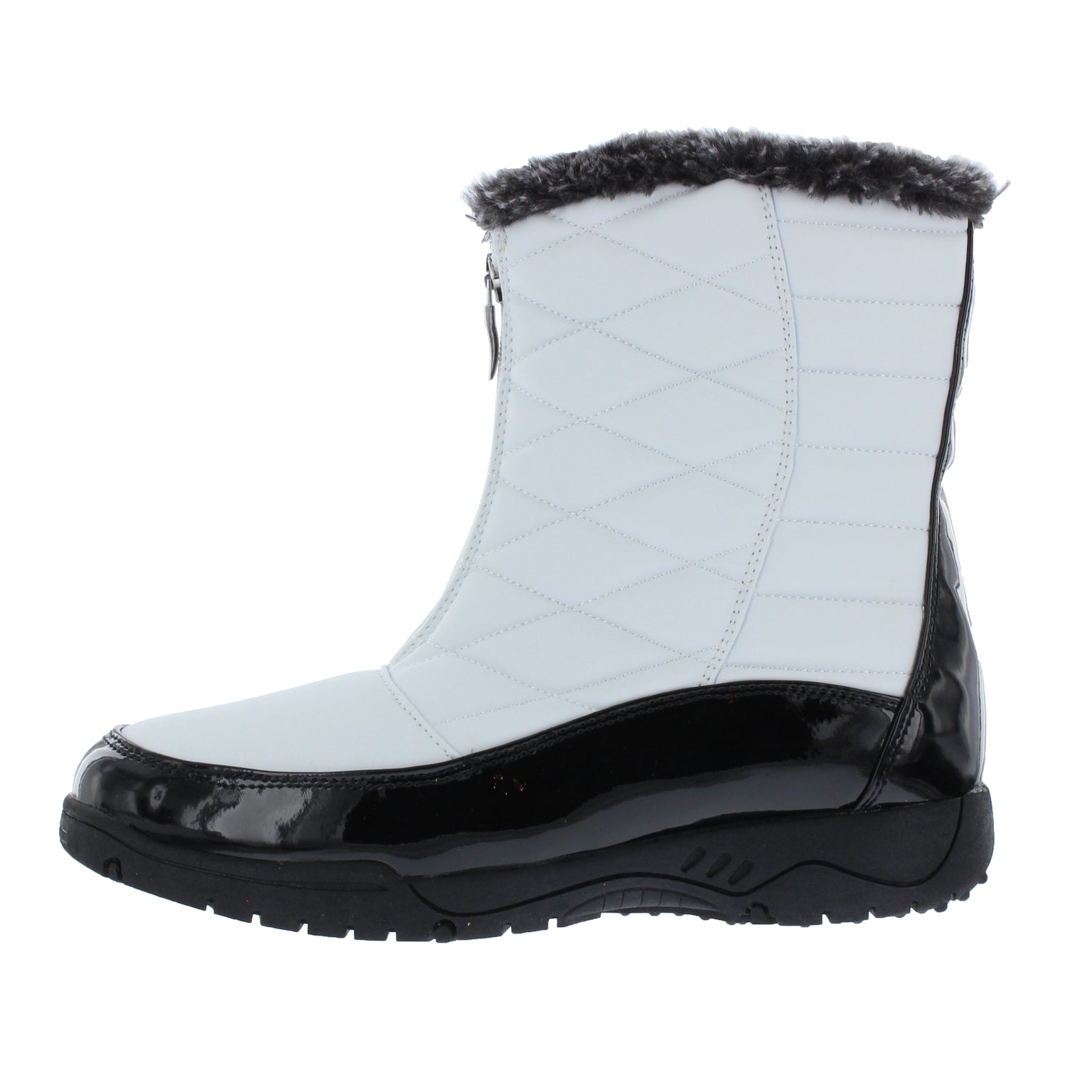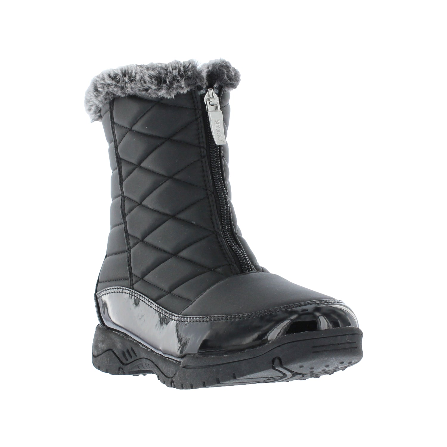 These comfortable, functional, and warm Women's Eve Winter Boots will keep your feet toasty and dry even in the harshest of elements. The rugged rubber outsole is durable for almost any activity. These winter boots feature a front zipper for easy on and off, a water-resistant outer shell, and a warm thermolite inner sock lining. Arm yourself with Eve, and your feet will thank you all winter long, whether you're out shoveling, stomping through the snow, or just taking a stroll in the brisk winter eve.
