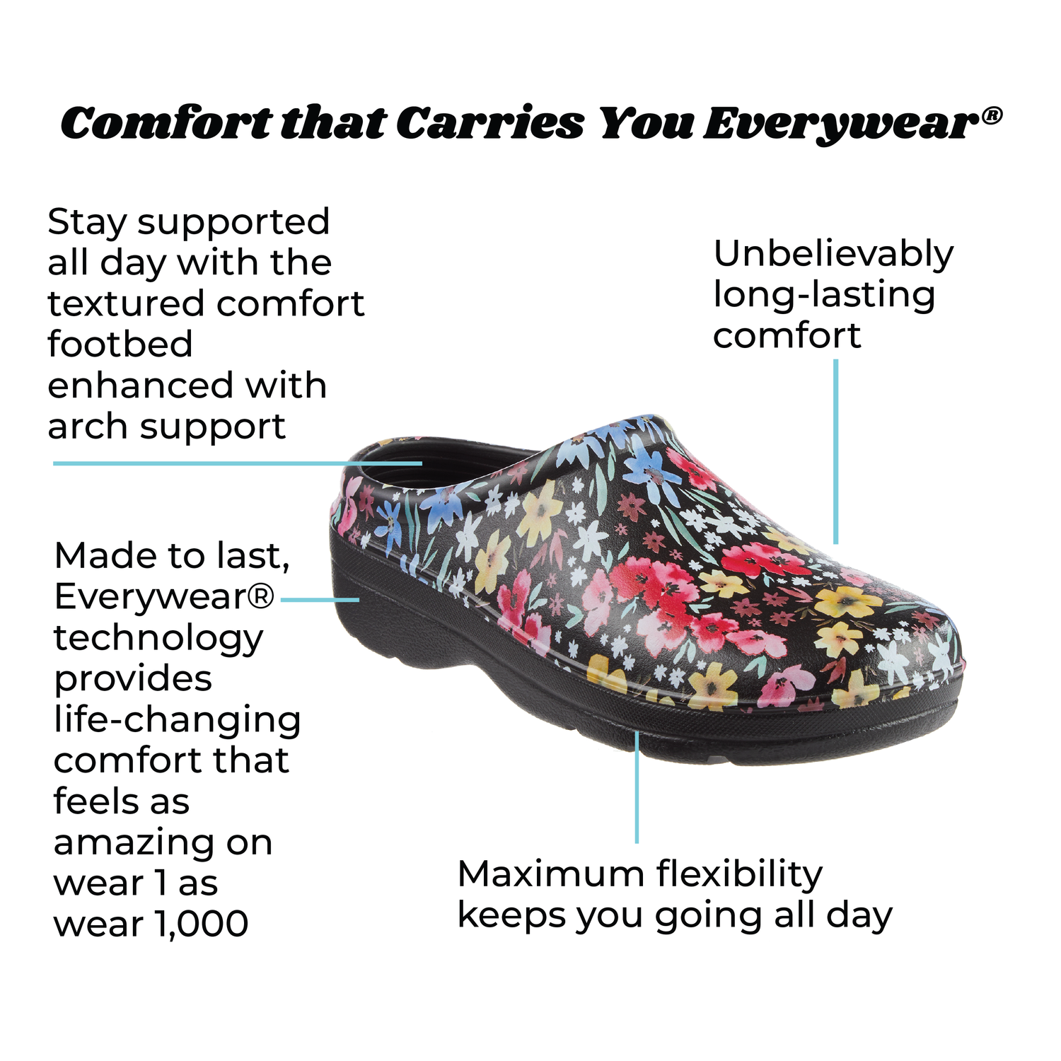 Everywear® is a patented technology designed for all-day comfort — soft, supportive, and flexible so you’ll want to wear it, well, everywhere.