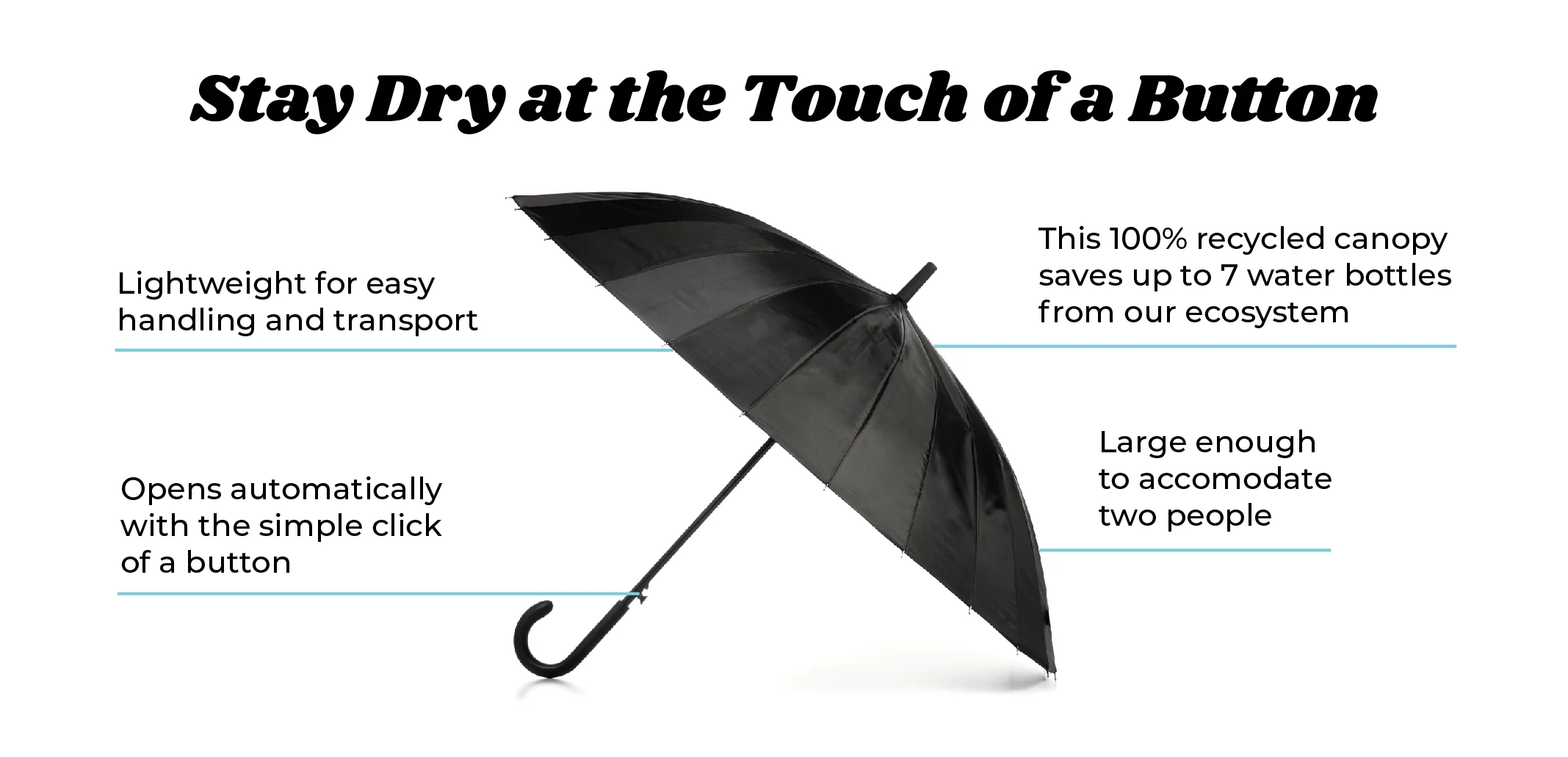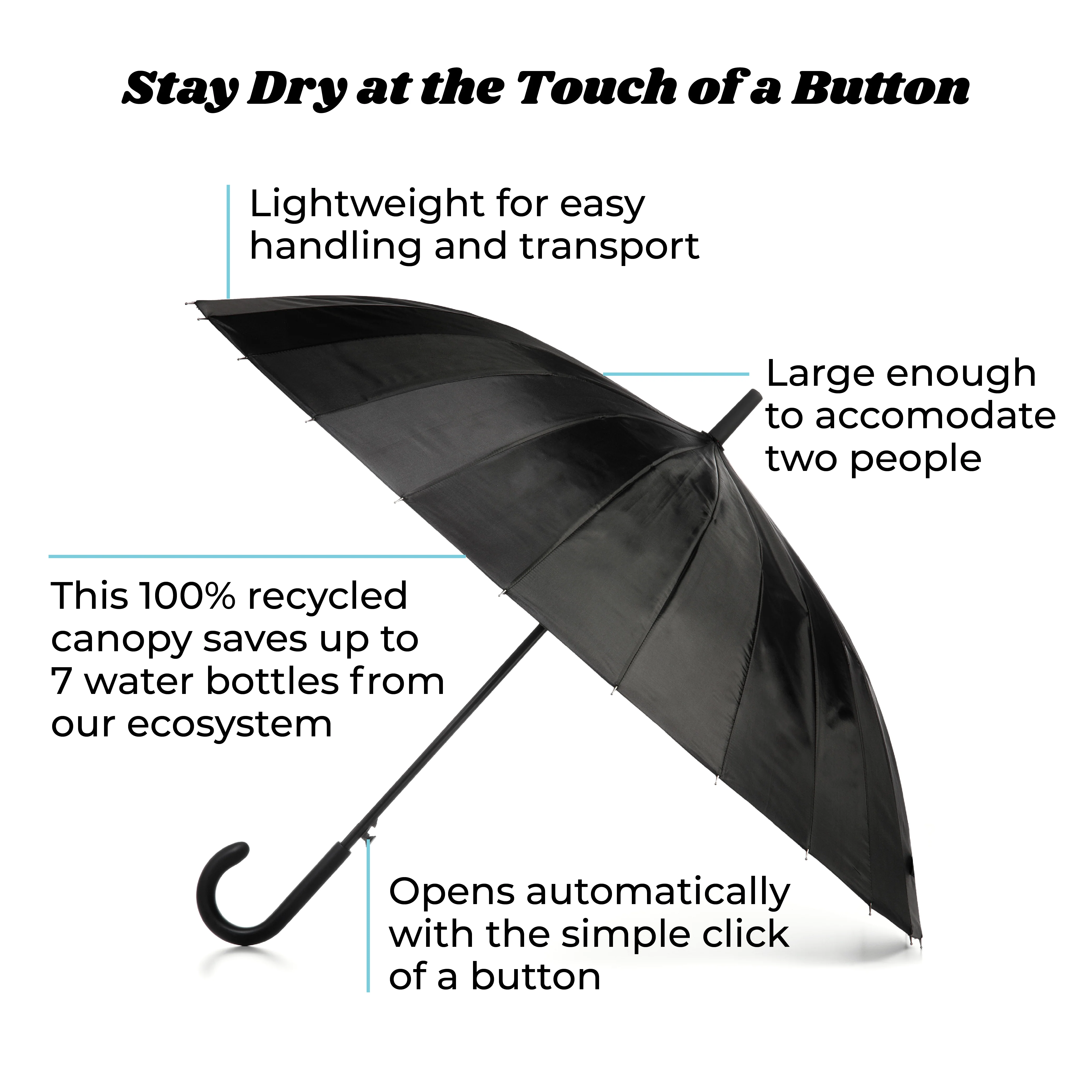 Engineered with auto-open technology, it deploys effortlessly with a single touch, combining convenience with sophistication. The premium water-repellent canopy ensures rain rolls away , keeping you dry and polished with ease.